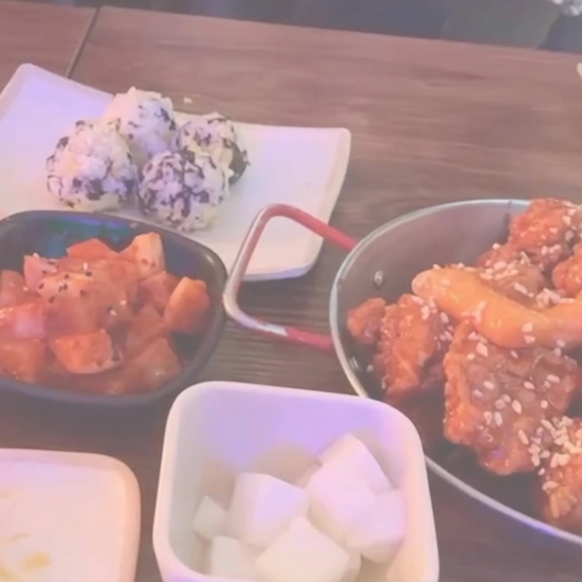ヤンニョムチキンにチーズボール