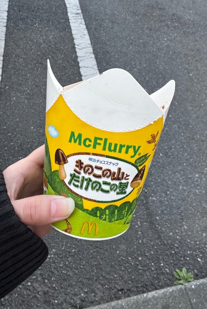 今、話題の期間限定のマックフルーリーきのこの山とたけのこの里を食べてきました〜😆😆😆
