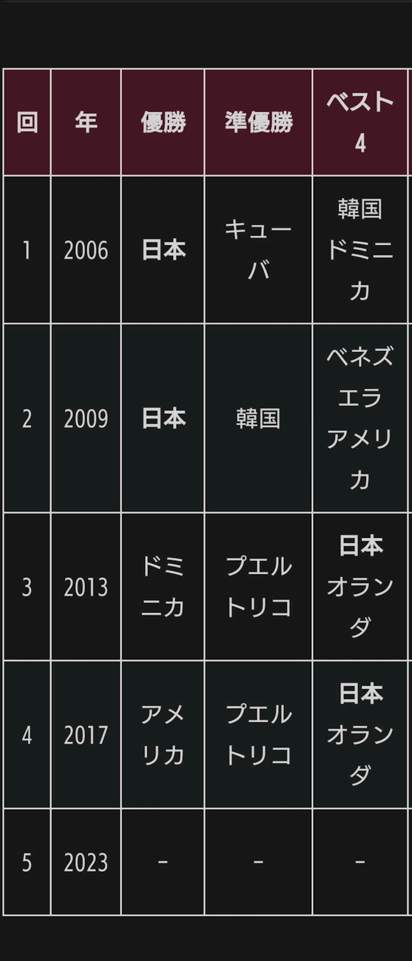 野球大国アメリカですら優勝1回、3位が1回だけです❗