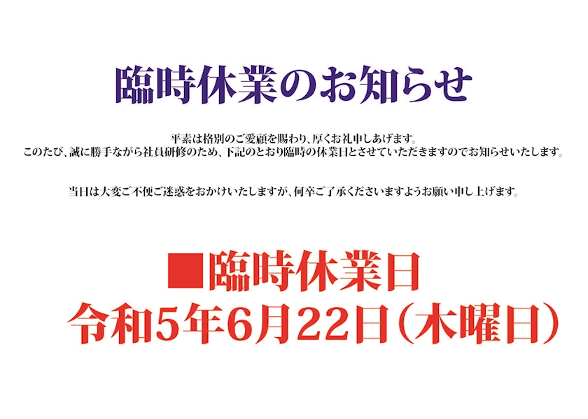 滅多に無い事ですが本日は店休となっております🙇🙇🙇