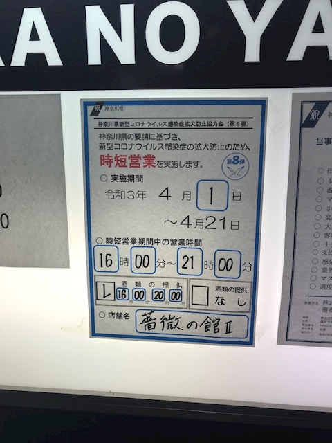 4月21日まで16:00~21:00の間で営業します。 -