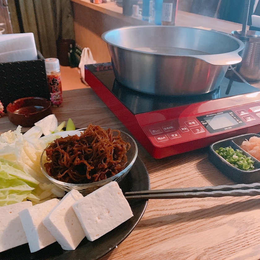しゃぶしゃぶがメインで沖縄料理が食べられるんだよ〜🥳💜