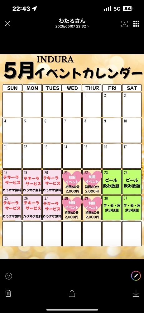 5月イベントダヨ💕 - みい - GIRL'S BAR INDURA・ガールズバーインドゥラ - 湘南台のガールズバー