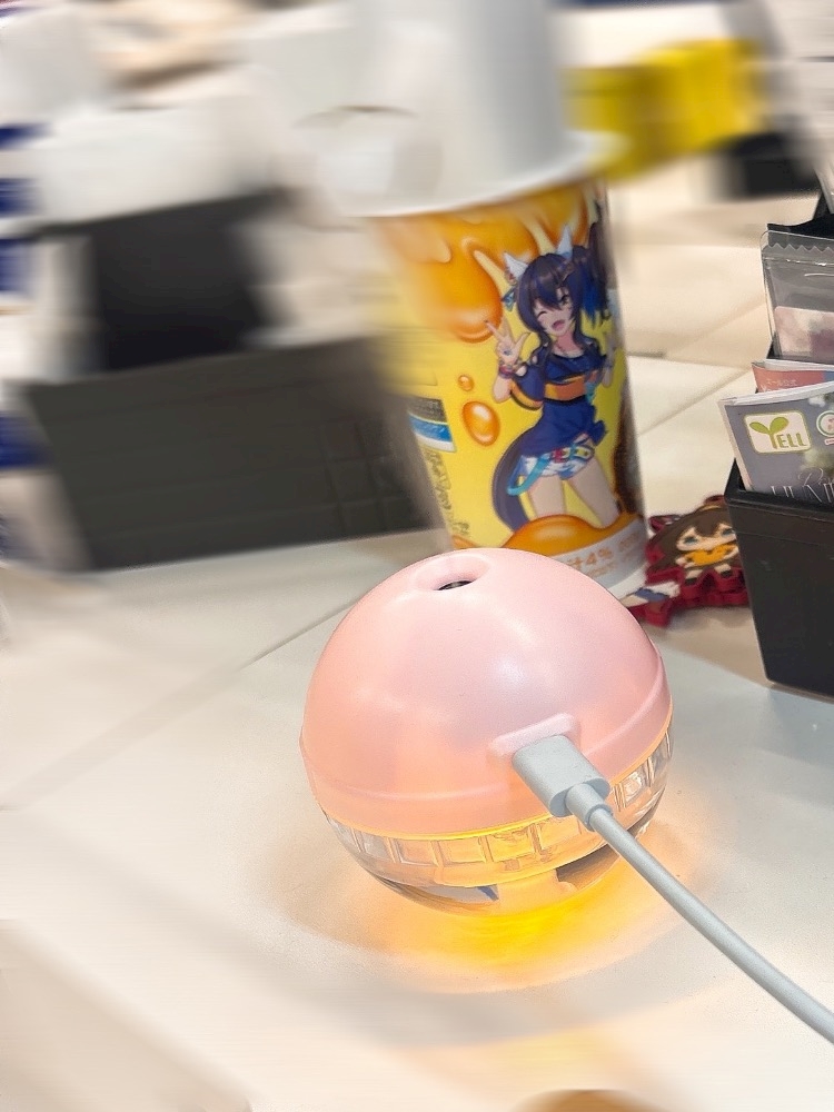 いただいたガチャガチャの加湿器たすかる