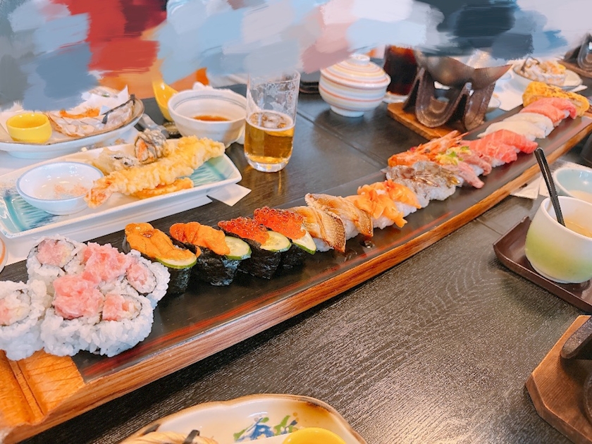 お昼はお寿司懐石コース的なのをお腹いっぱい食べた!