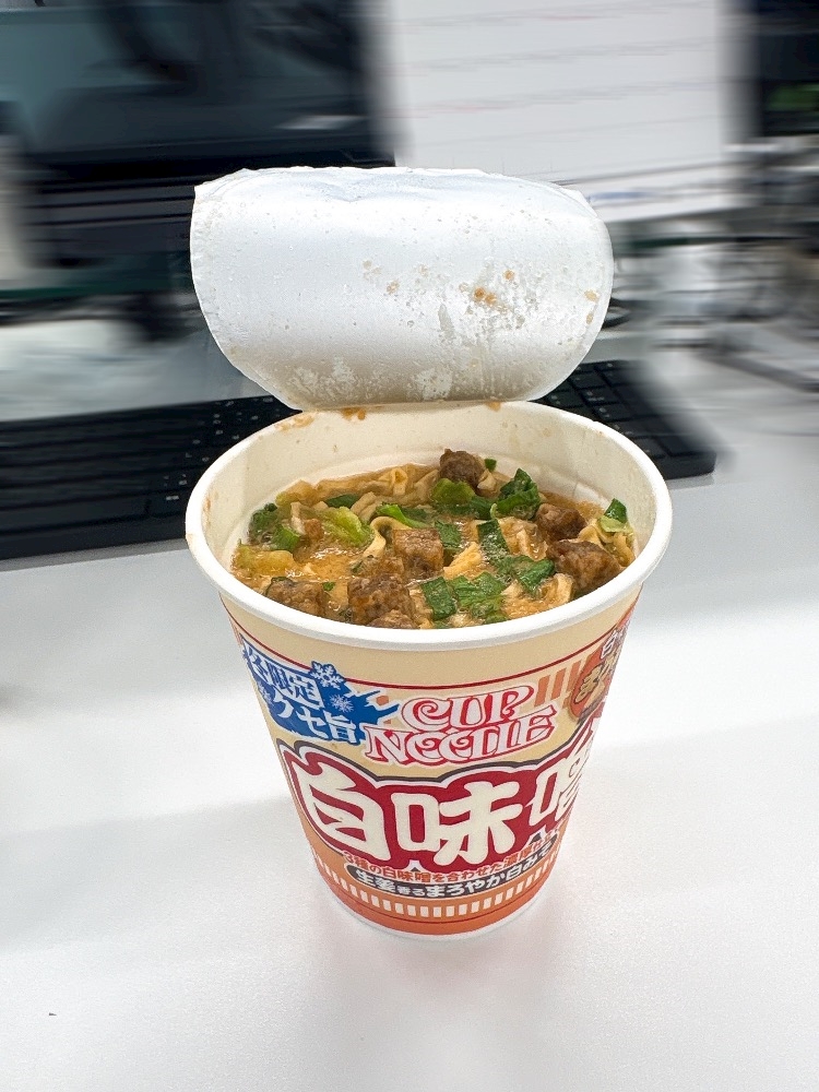 そして今日のお昼ごはんはお弁当用意するのが眠くてだるかったので家に買ってたあったカップ麺適当に持ってきて食べたんだけど