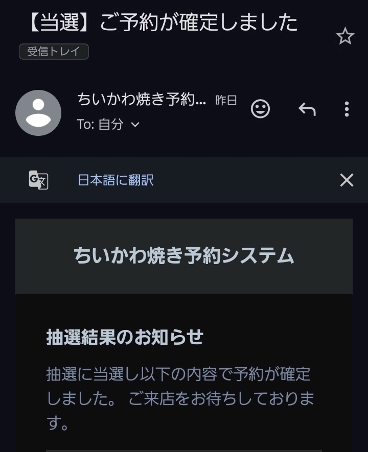 ちいかわ焼きの抽選にやっと当たって嬉しい
