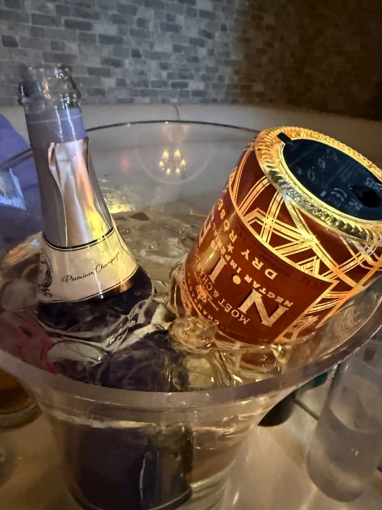 お祝いでケーキとシャンパンも