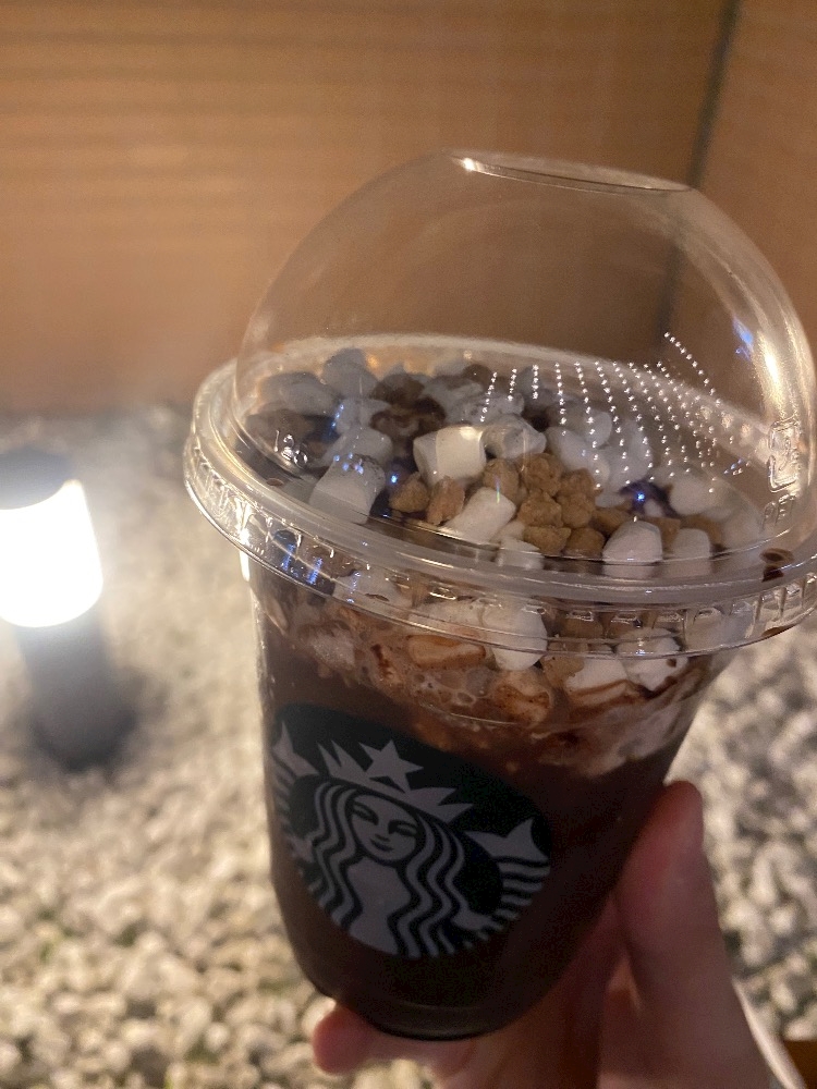 ご褒美にスタバ飲んでました〜スモアのやつ!!!