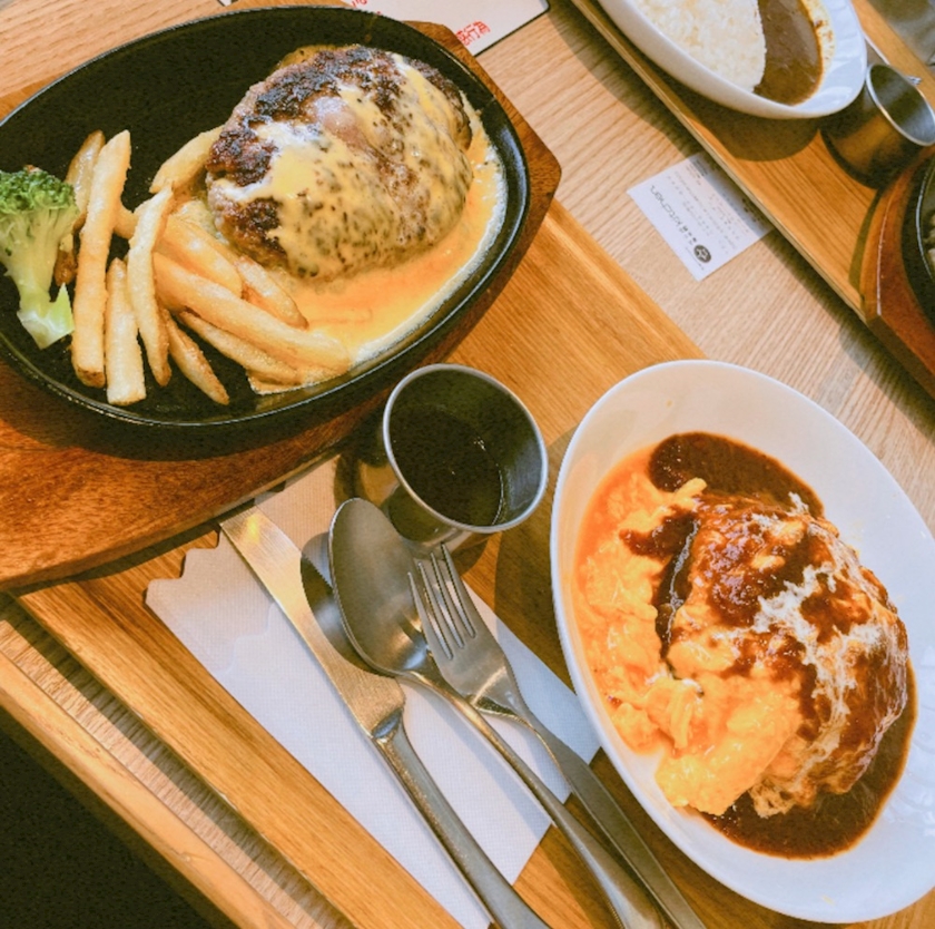 ハンバーグとオムライス食べて