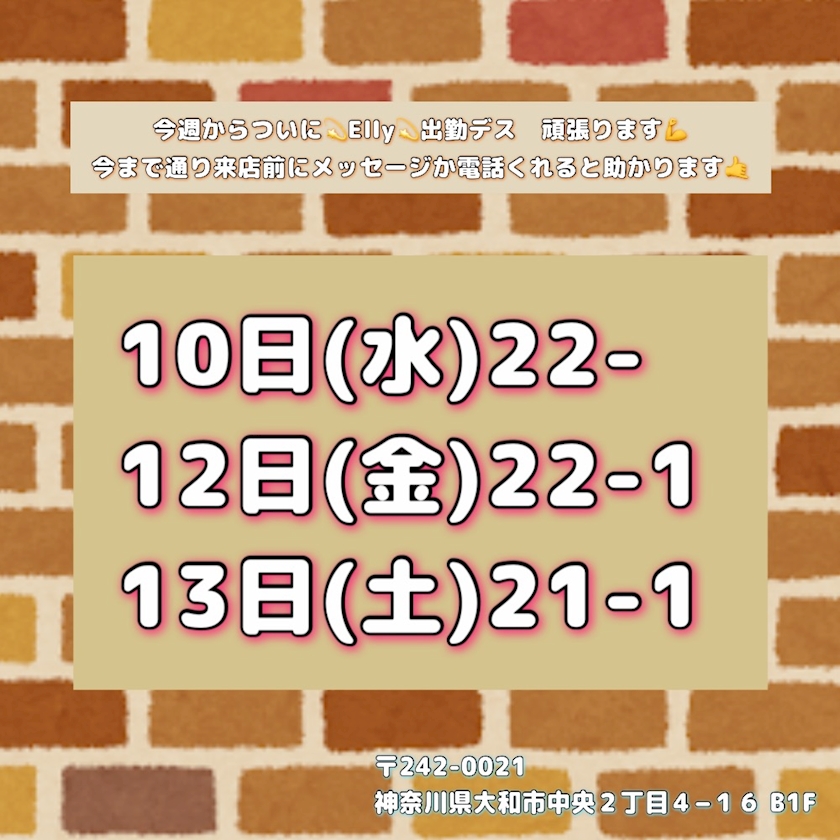 🐙今週の出勤日🐙 - たこ - Elly・エリ― - 大和のパブ/スナック