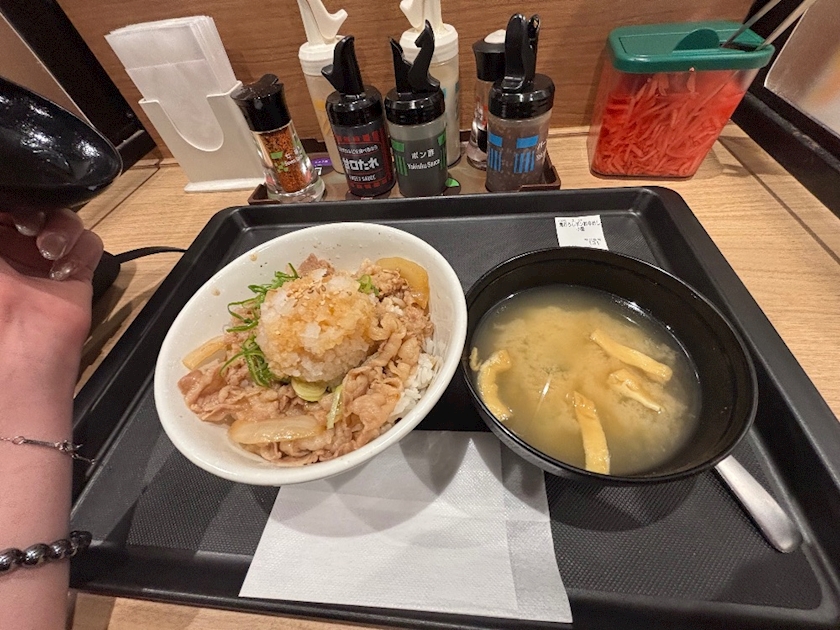 赤ちゃんは、今朝飲んだ帰りに松屋を貪りました