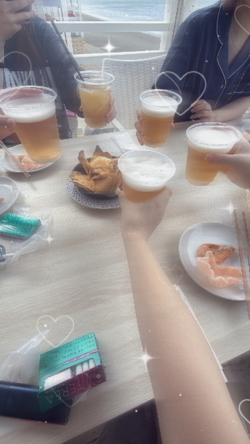 海の家で乾杯なんてしちゃって- ̗̀👏🏻 ̖́‐