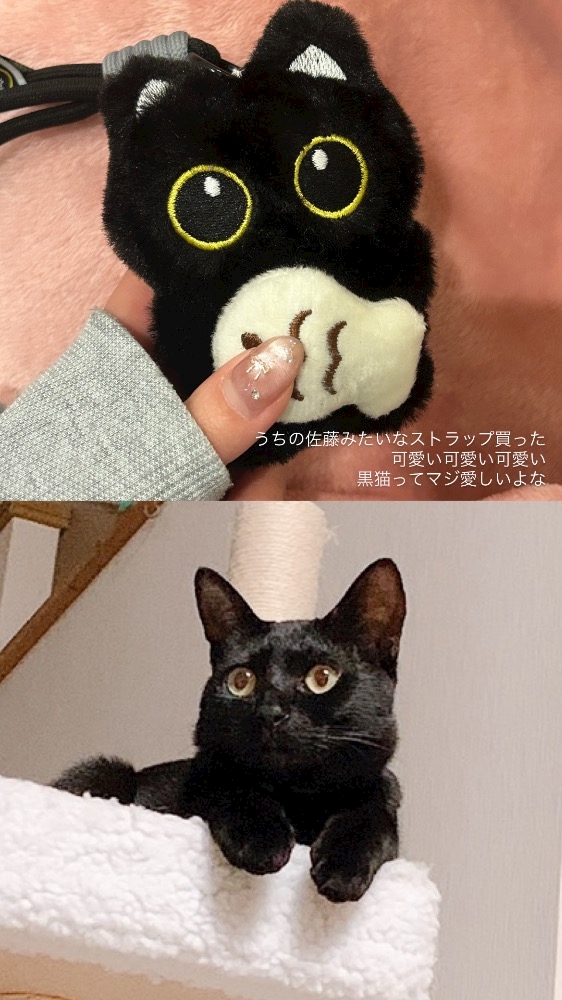 うちの実家で飼ってた黒猫みたいなストラップ買った♡