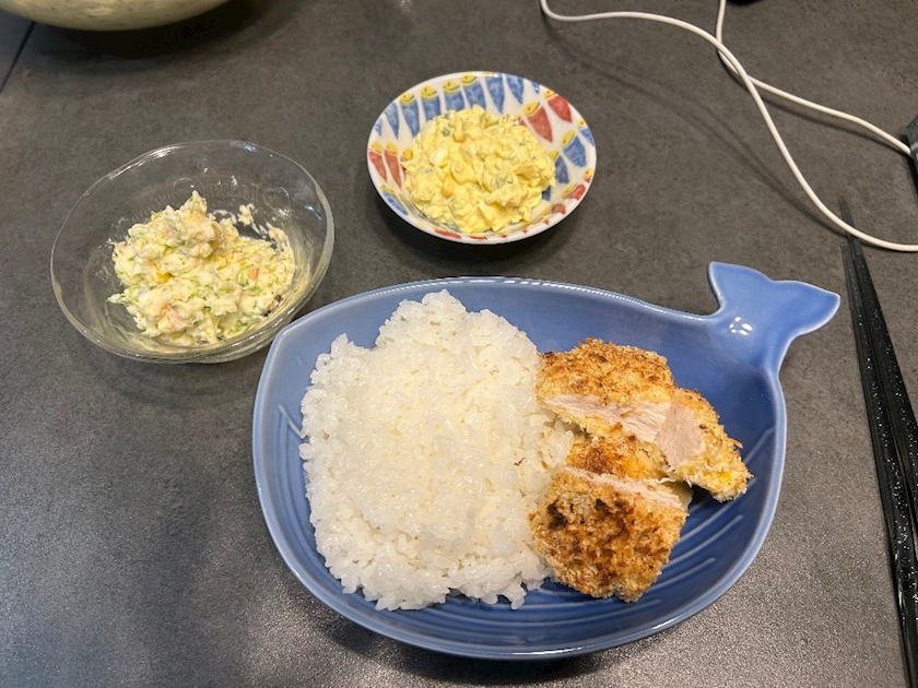 昨日はチキンカツとポテトサラダとご飯🍚作ったんだっ♥