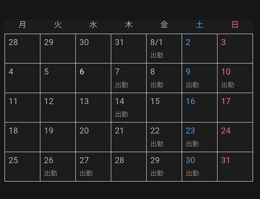 今月の出勤予定日⬇