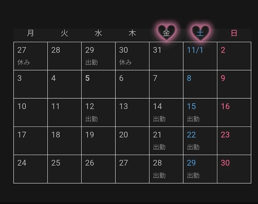 今月の出勤予定日⬇