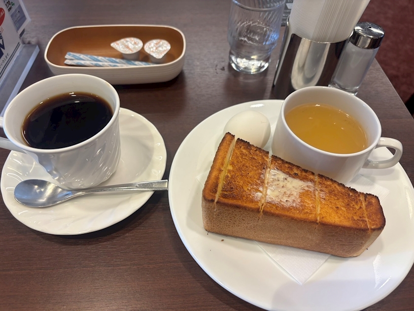コーヒー☕️、パン🍞、スープ🥣、卵🥚
