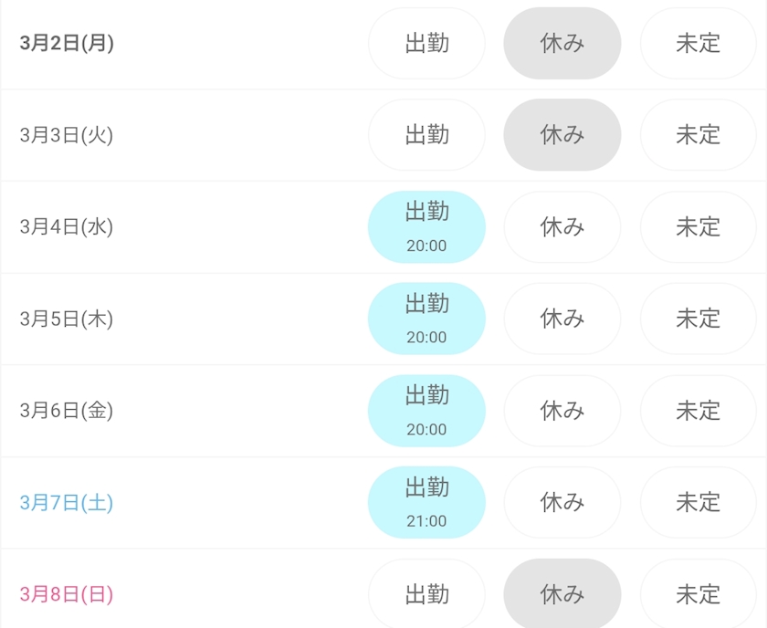 今週のお給仕予定です!!!