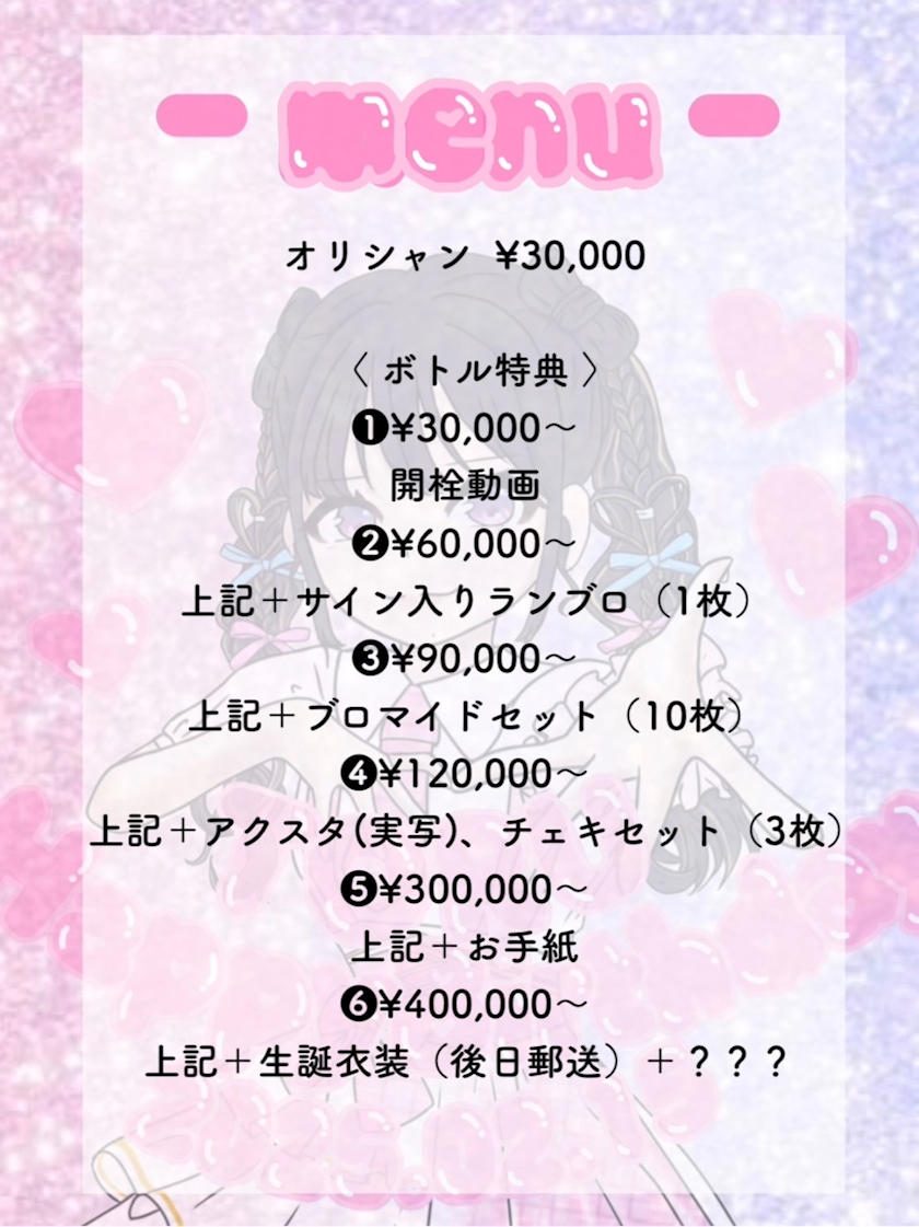 ❷¥60,000〜上記+サイン入りランブロ(1枚)