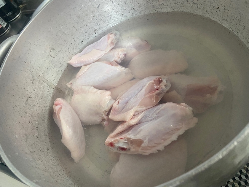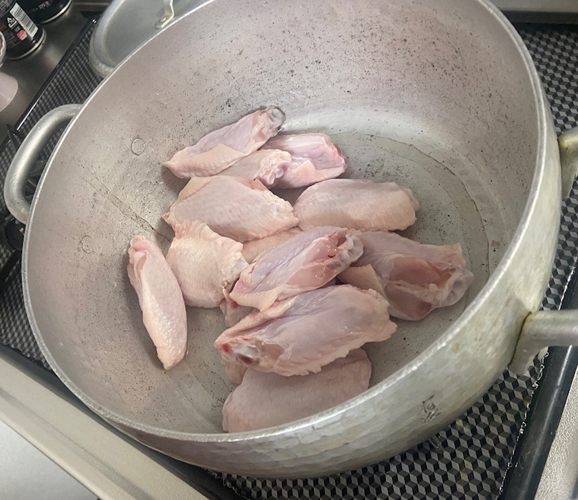 鍋に手羽中を入れます✨