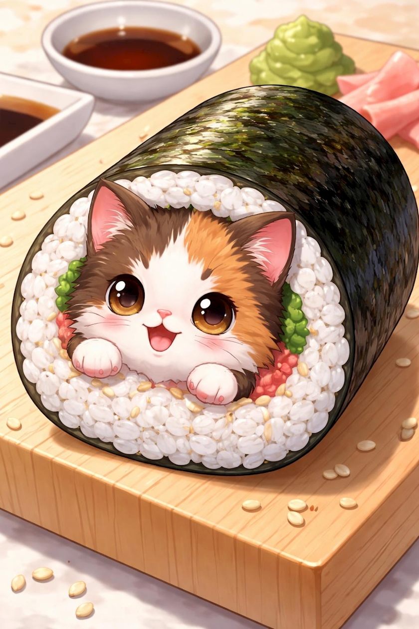 お寿司のねこ巻きとは😊❤️😽
