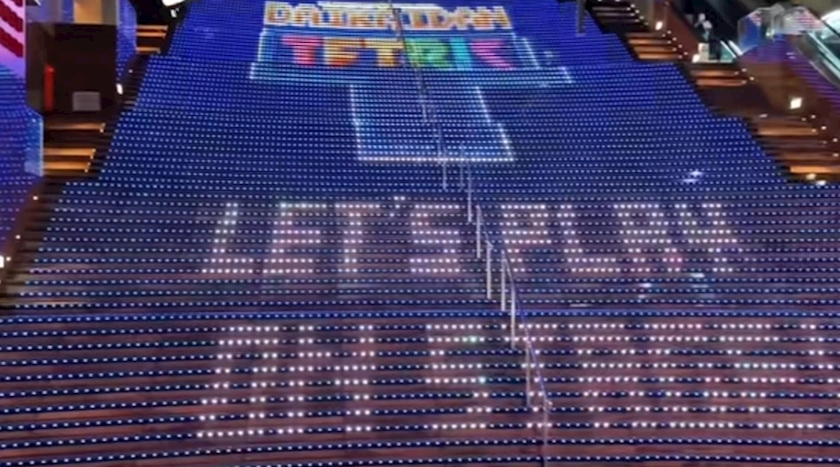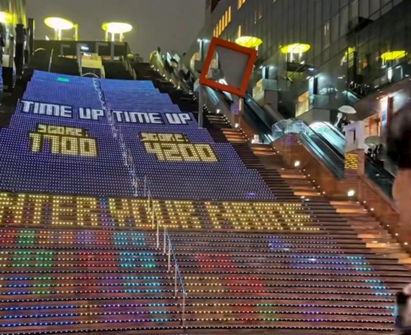 京都駅大階段のテトリス😆...