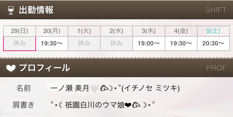 来週の出勤予定🌟 - 一ノ瀬 美月🤍𐂃☽⋆꙳ - CLUB ONE CHAN 祇園白川・ワンチャン ギオンシラカワ - 祇園の熟女パブ/熟女キャバクラ