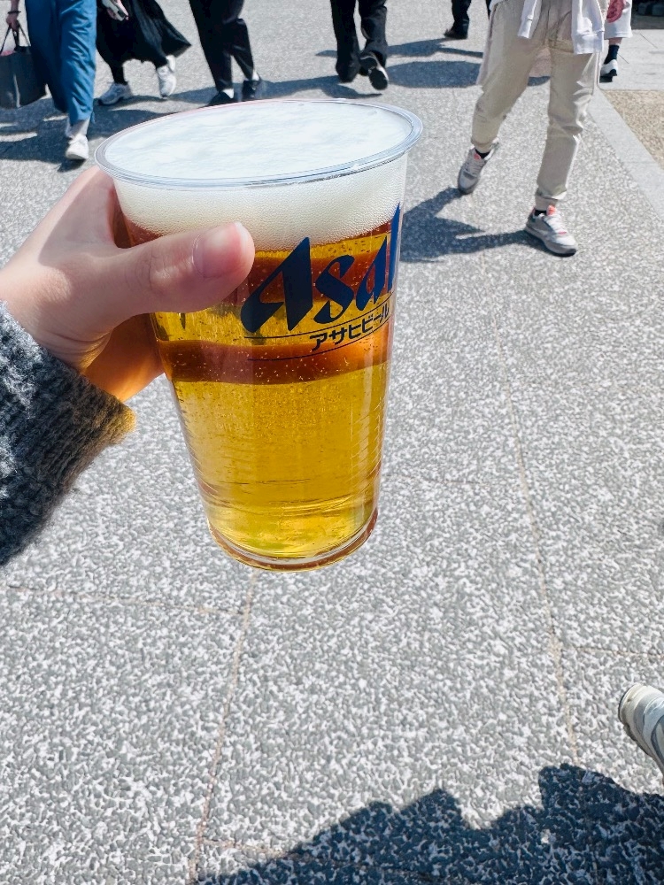 青空の下で飲むビールは最高やね.ᐟ.ᐟ