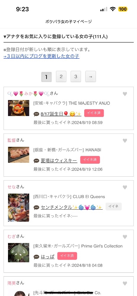 お気に入り登録してくれてる女の子たちから