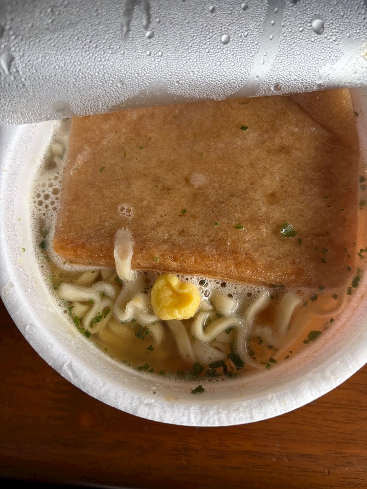 どんべい食べたら卵が♡になってた(^○^)