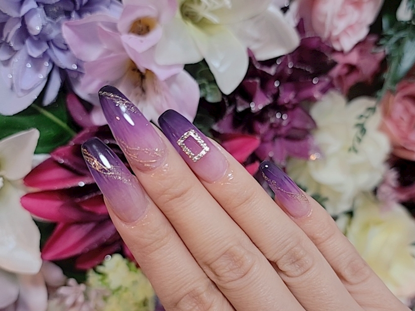 右手は紫グラデーション