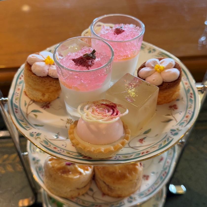 言わずもがな、レアチーズの上に桜のゼリーがのった