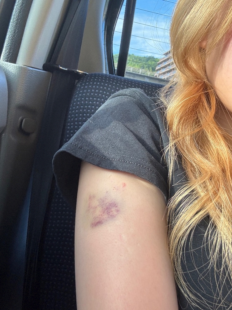 ねねの腕に青タンが爆誕してました‼️ᕙ( ˙꒳˙ )ᕗ