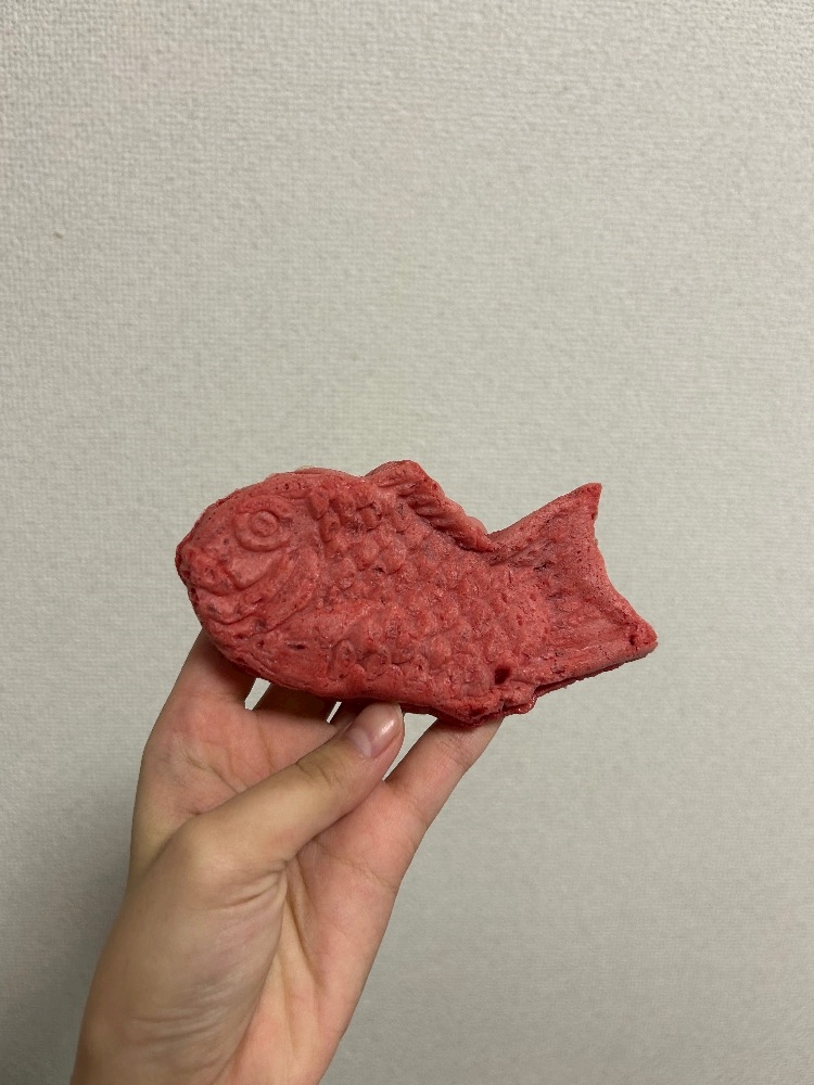 昨日ピンクのたい焼きたべました