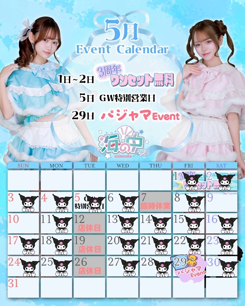 0428店休日💤5月のお給仕予定💕 - みく - 海の中・ウミノナカ - 木屋町のコンカフェ