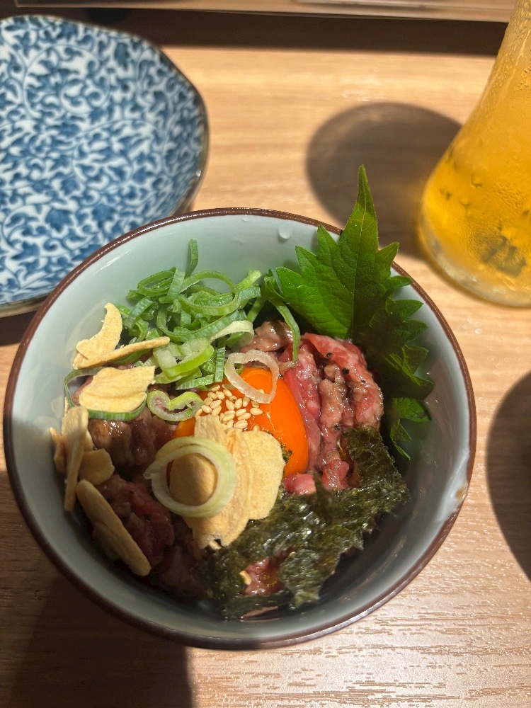 茶碗蒸しの容器にユッケ