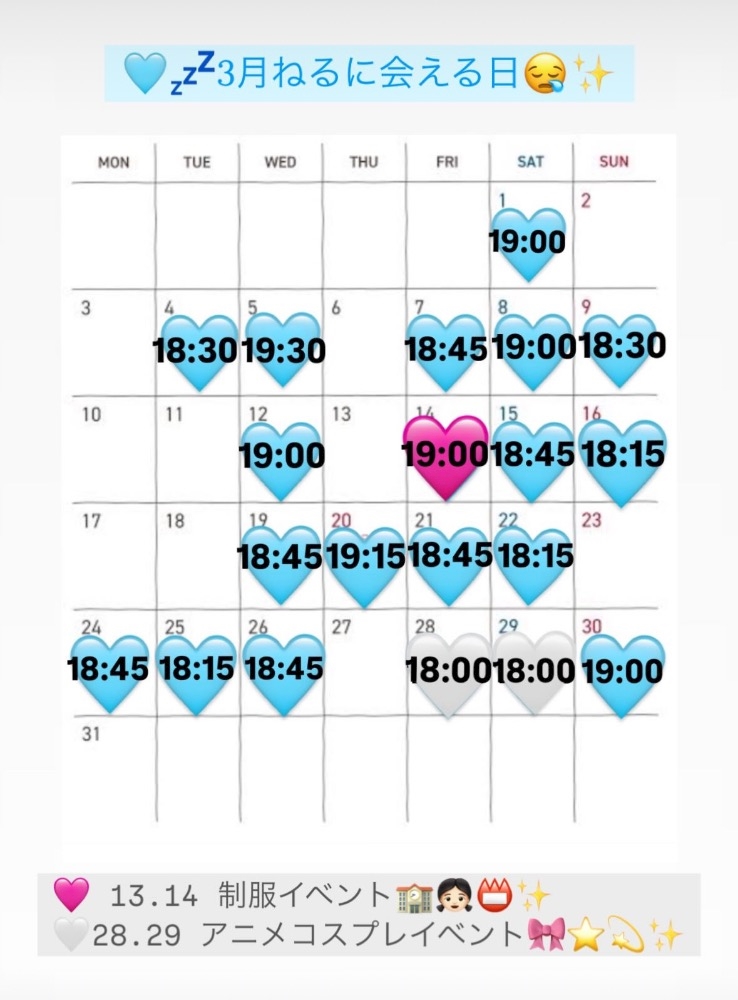 今月の予定表も貼っておきます‼️