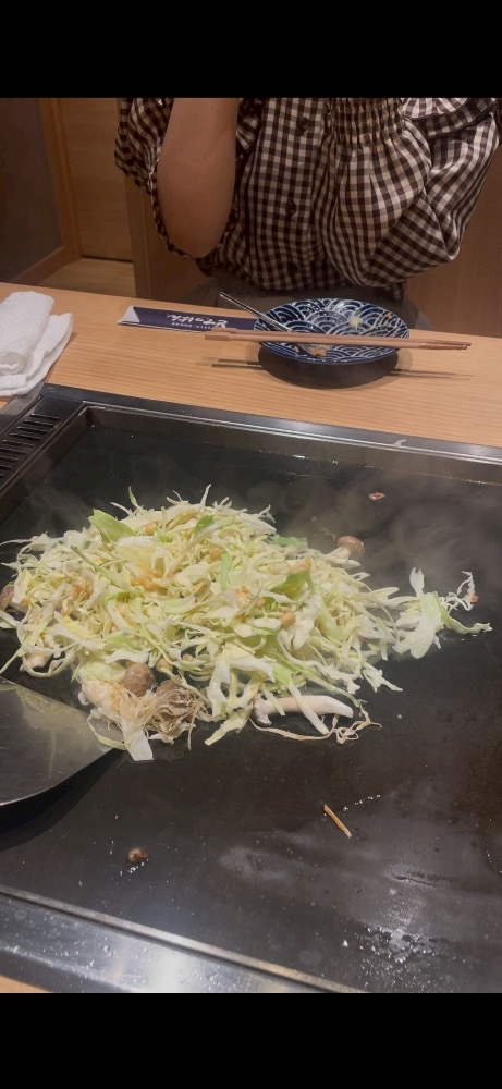 もんじゃ焼きって最初はこんなに具が大きいんやね🤔