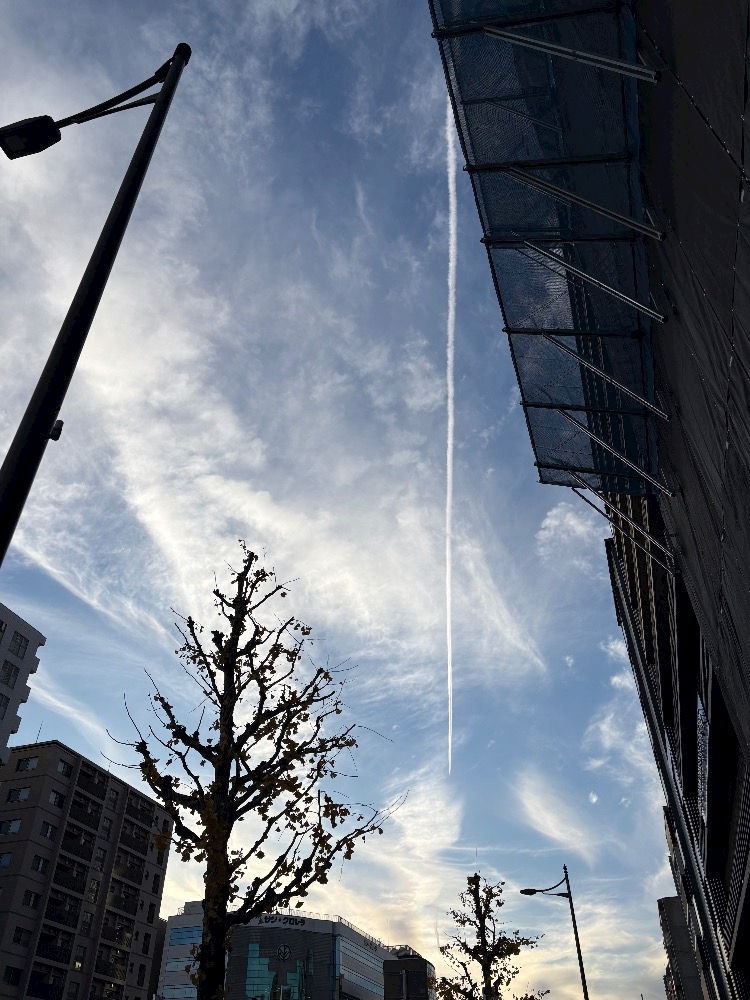 お散歩途中綺麗な飛行機雲発見🤩✨