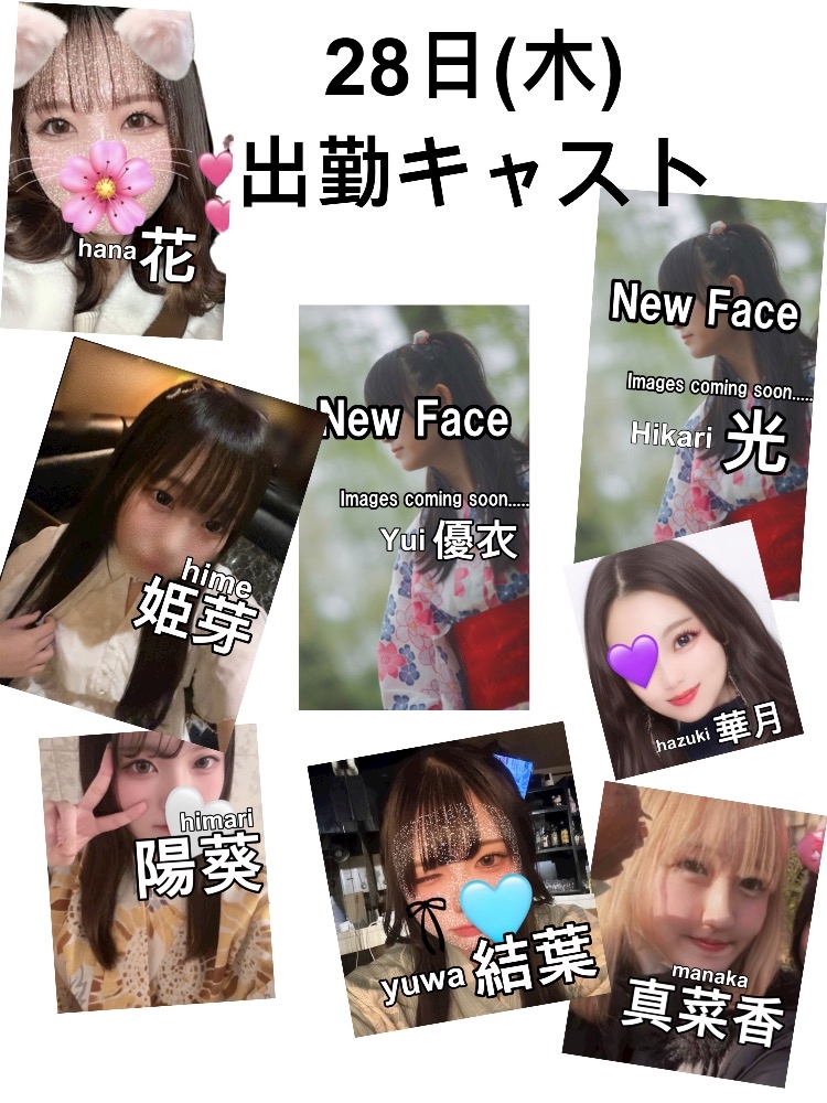本日も新人さん、初体入のキャストさん、