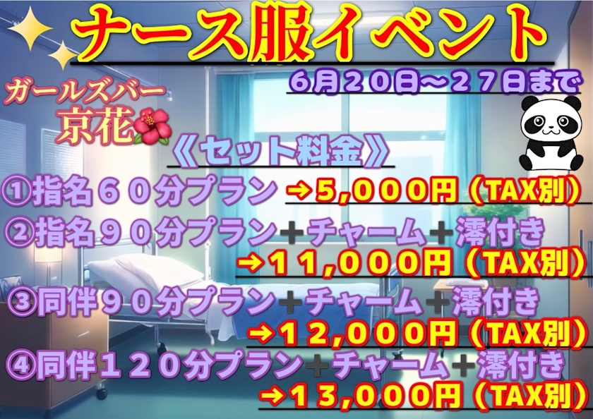 ガールズバー京花🌺は今日まで《同伴イベント》となっており、明日からは《ナース服イベント》になります👍