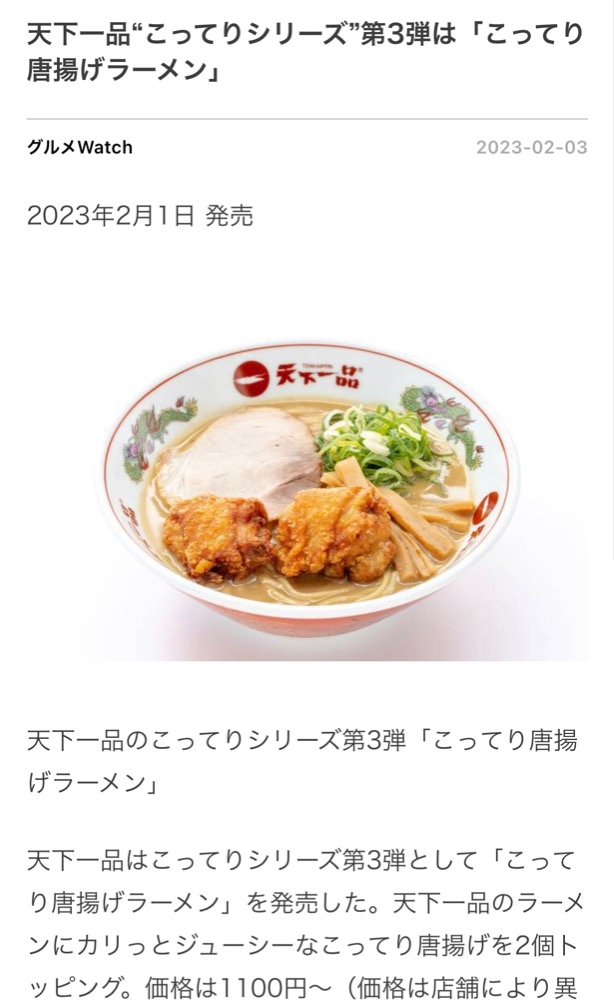 天一の唐揚げ、美味しくて好きです😋❤️