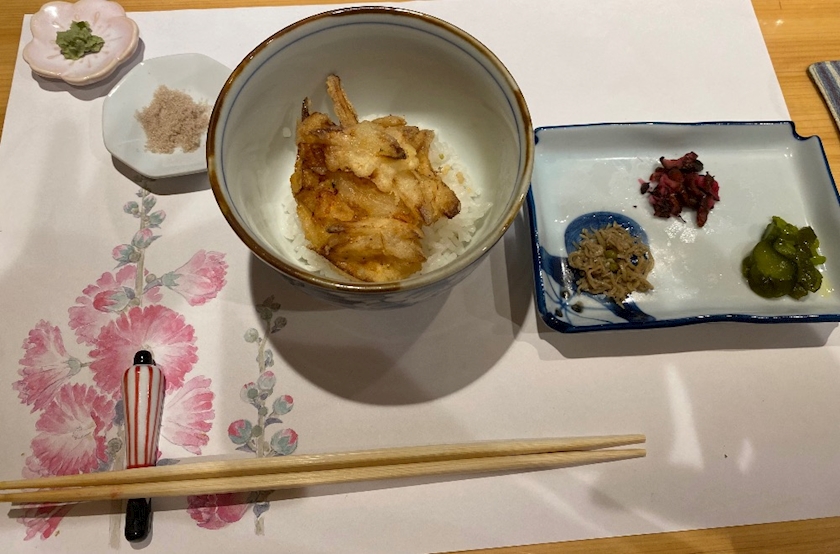 ほっき貝と玉ねぎのかき揚げ、