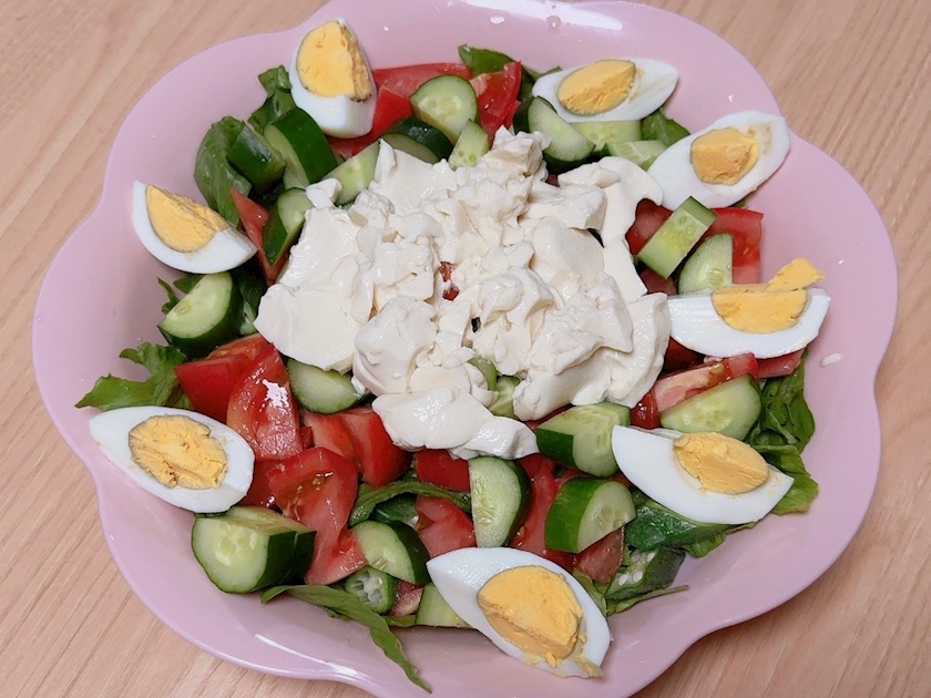 レタス、豆腐、ゆで卵です🥗