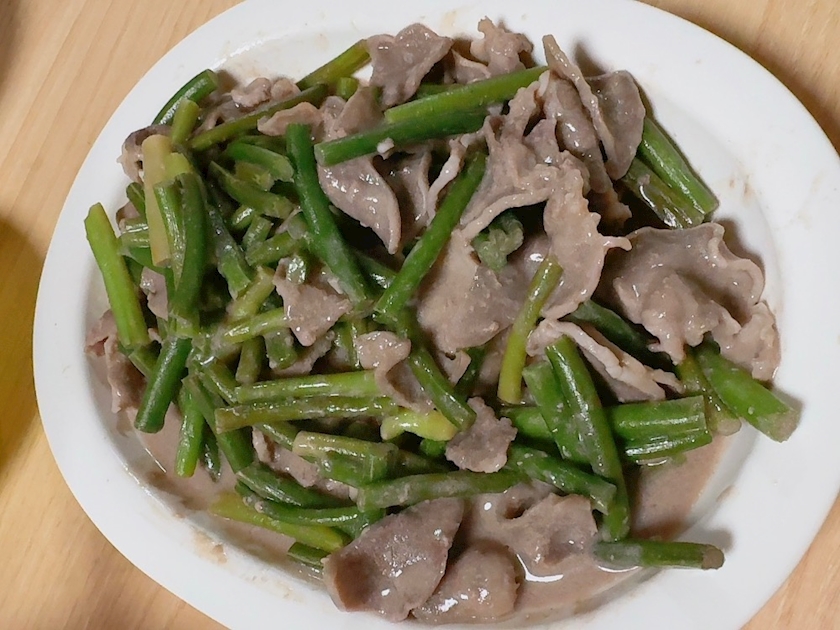追加で豚タンとインゲン炒め🍳