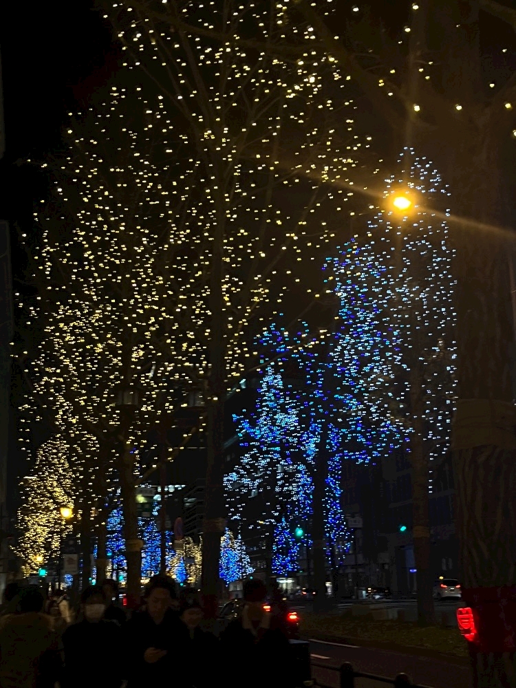 御堂筋ではまだイルミネーションが残っていたので、