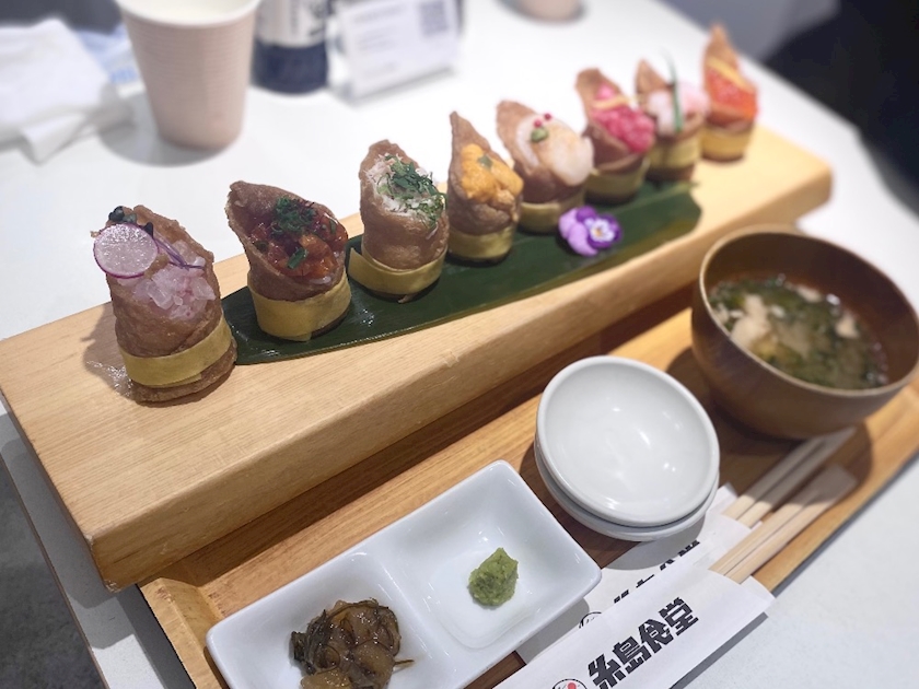 いなりにいろんな海鮮が乗ったお寿司!