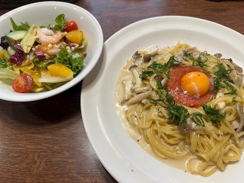 ここで明太子のパスタ食べてから