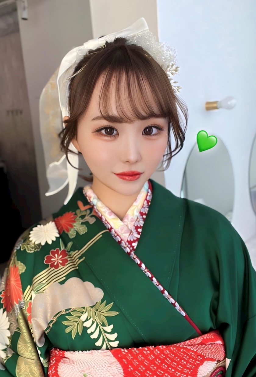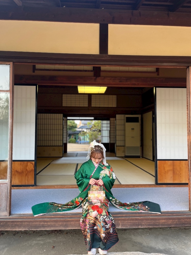 お気に入りのお母さんの振袖と💚